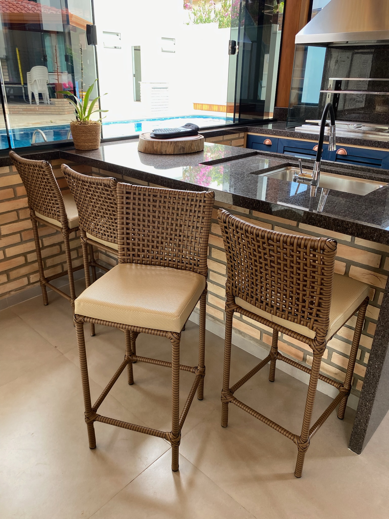 Banqueta Mineirinha com Fibra Sintética, e almofada parafusada.